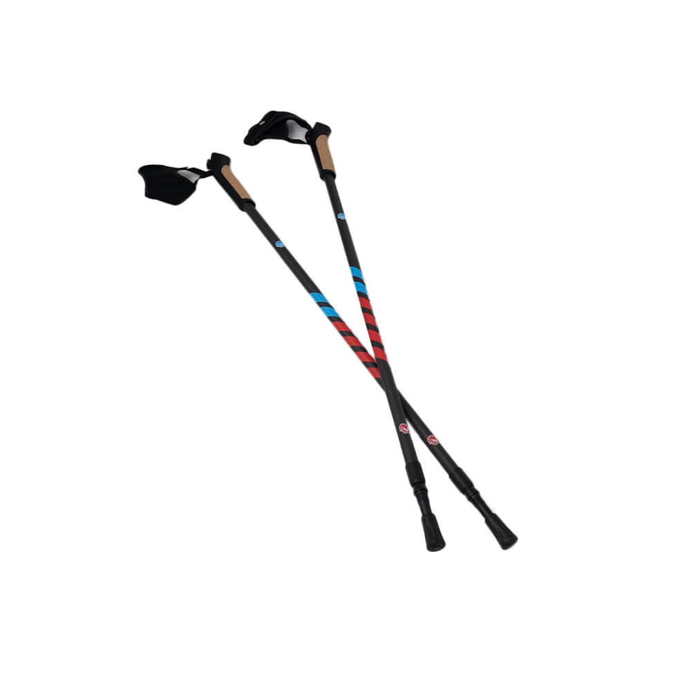 Прочные палки регулируемой длины из карбона. Телескопическая конструкция со специальным зажимом позволяет быстро подогнать палки под рост пользователя. Рукоятки выполнены из пробкового дуба. Противоскользящие грунтозацепы на наконечниках палок не дают им проскальзывать по любому покрытию. Вес палок составляет всего 210 грамм.